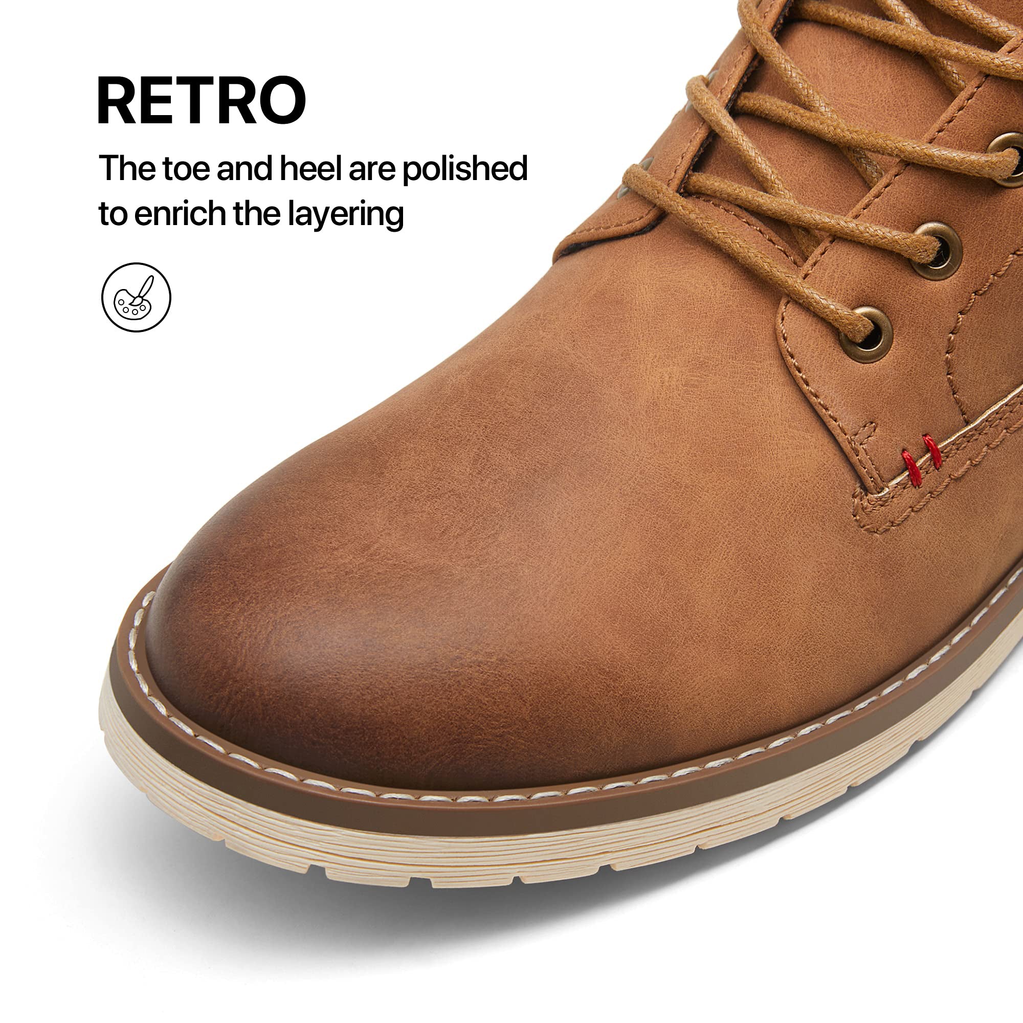 - Fashion: Polished shoes toe and red stitching makes this casual dress boots stylish